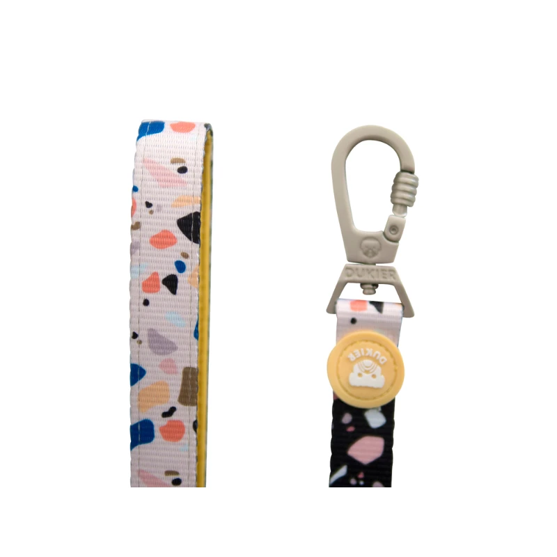 - Mousqueton robuste, testé pour de forts coups de laisses.