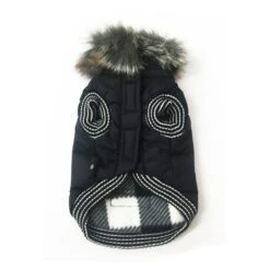 Doggy Dolly | Blouson Pour Chien Matelassé Col Fourrure Doublure Polaire | Noir