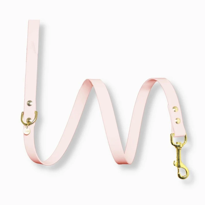 Conçue en sangle TPU imperméable grise et bouclerie dorée en laiton, cette laisse pour chien made in France sera idéale pour vos promenades les plus sportives grâce à sa facilitée d’entretien.