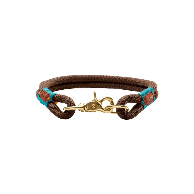 Le collier OSS d’Hunter est un superbe collier en corde, esprit marin. Il est orné de finitions en cuir. Anneaux et mousqueton en laiton doré.