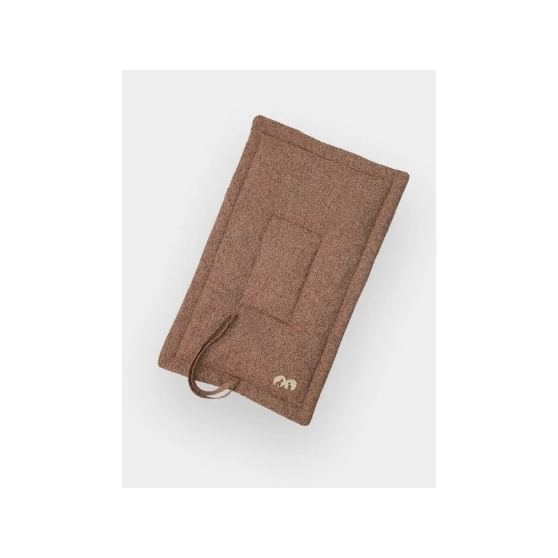 Il se compose d’une face résistante et élégante en lin/coton et d’une face en polaire toute douce. L’ensemble est matelassé pour un confort optimal. Ses deux lanières permettent de l’enrouler pour un encombrement minimal.