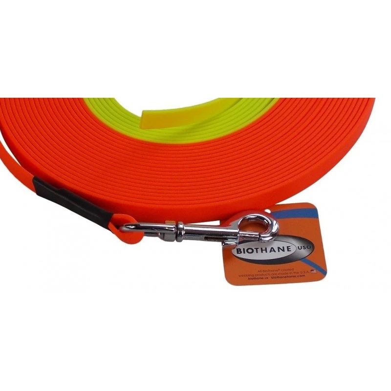 Longe en biothane, excellente durabilité, imperméable a l’eau, souple, facile à nettoyer à l’eau, très résistant à l’abrasion, antistatique, léger, ne prend pas d’odeur.