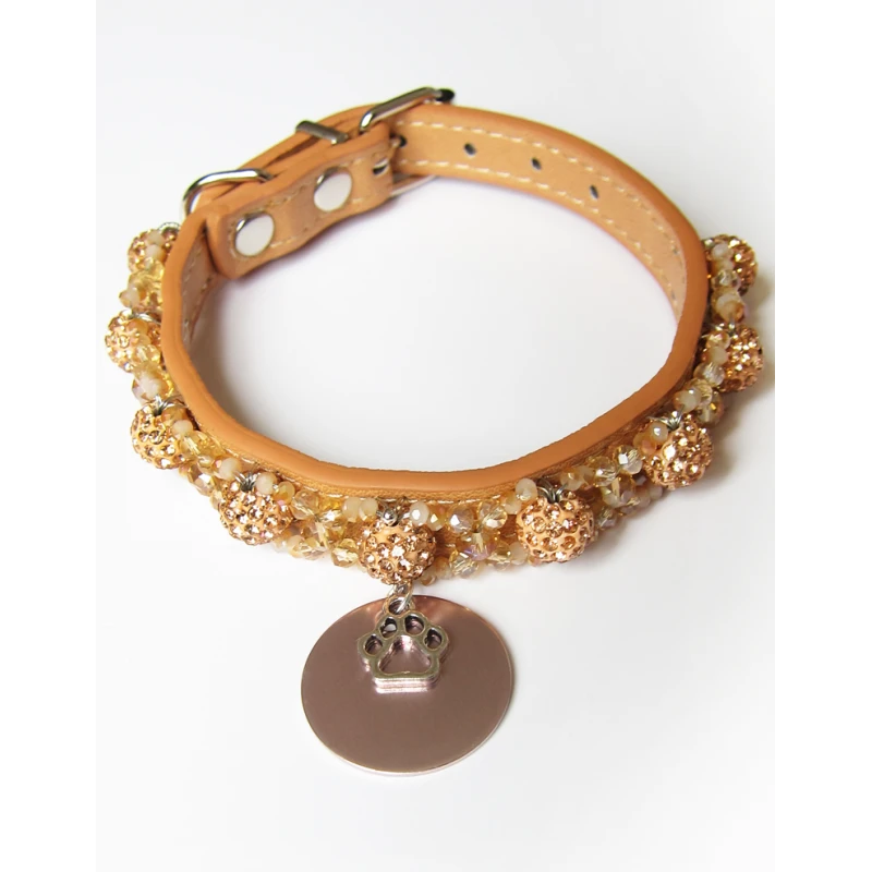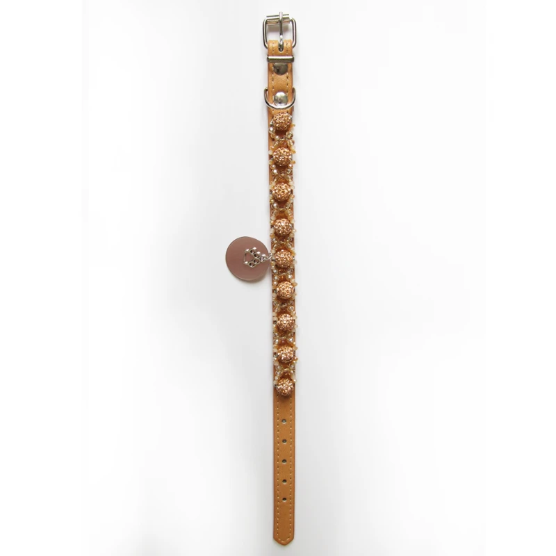 Collier réglable incrusté de perles et boules en cristal de coloris camel avec brillances.
