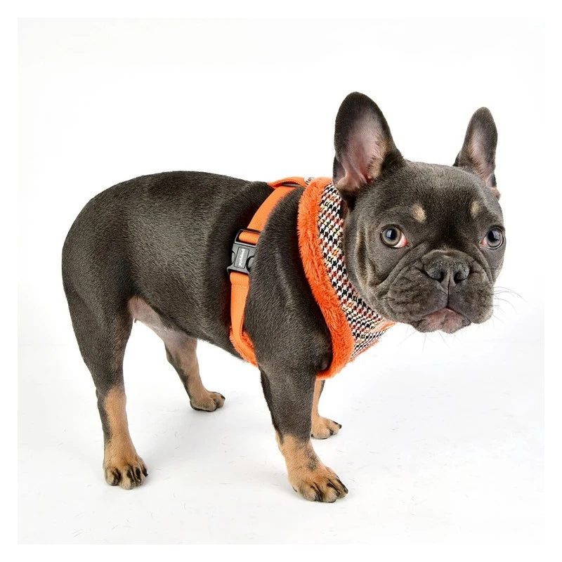 Ce harnais pour chien est chic avec son imprimé pied de poule multicolore !