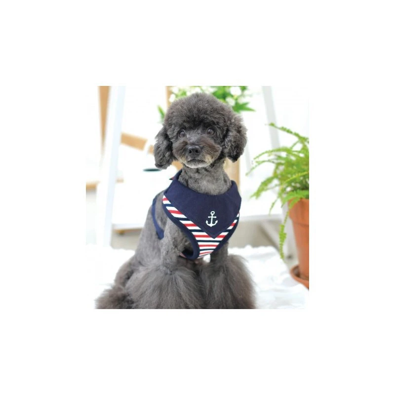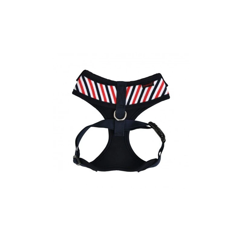 Offrez à votre chien le confort et le style qu’il mérite lors de vos balades, voyages ou croisière avec le Harnais Marin Rayé bleu marine pour Chien.