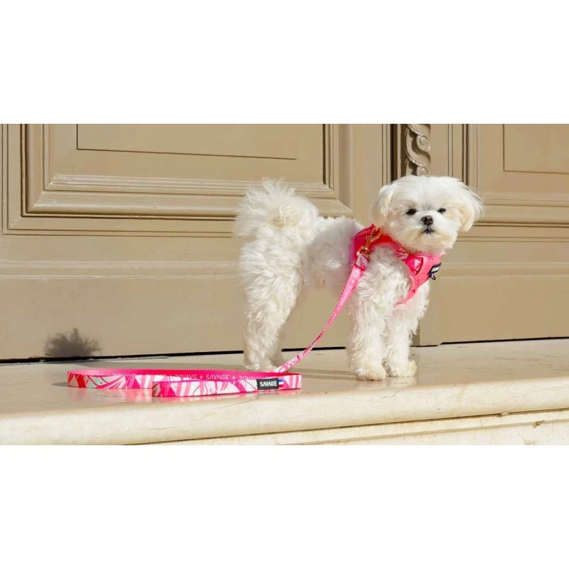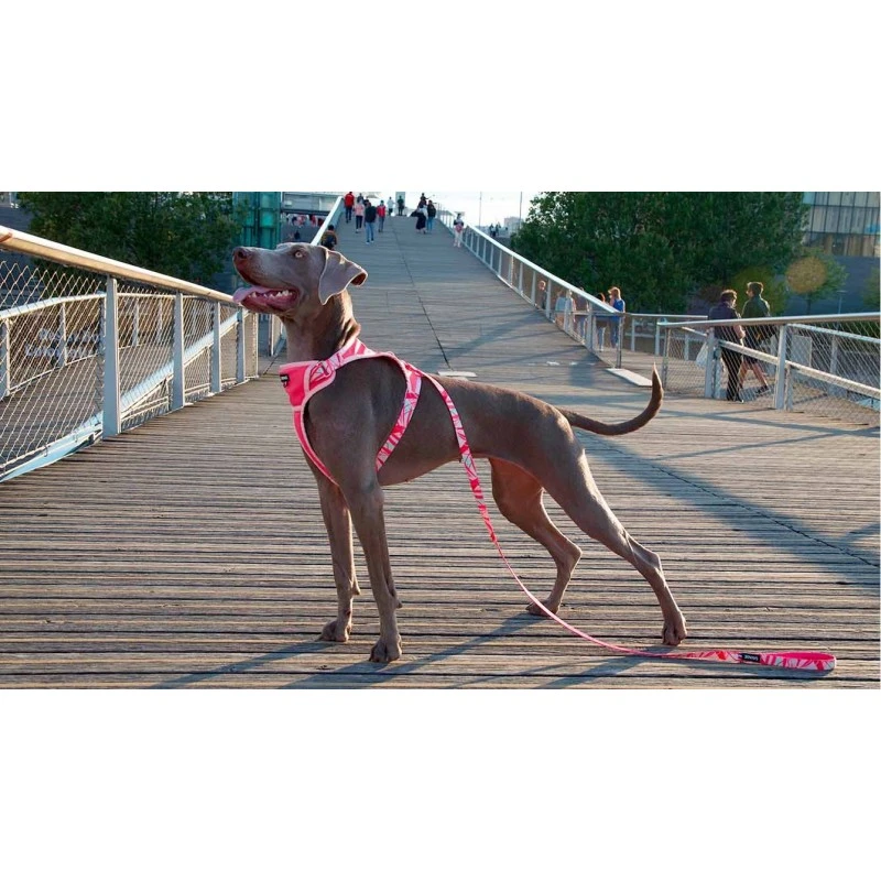 Avec des sangles à motif floral abstrait et un cuir vegan, de grande qualité, ce modèle est fait pour les chiens chics et éthiques.
