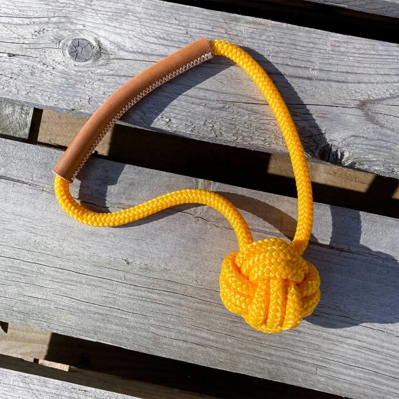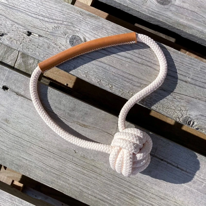 Ce jouet en corde et cuir est très polyvalent et résistant, promettant de longs moments de jeux et de complicité avec votre chien.