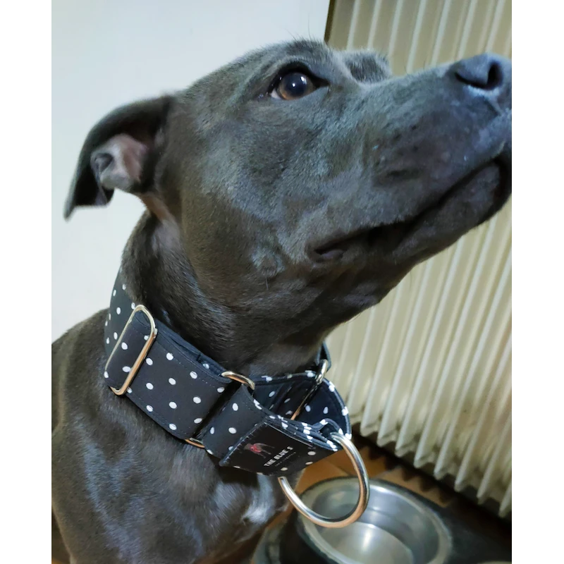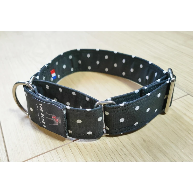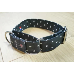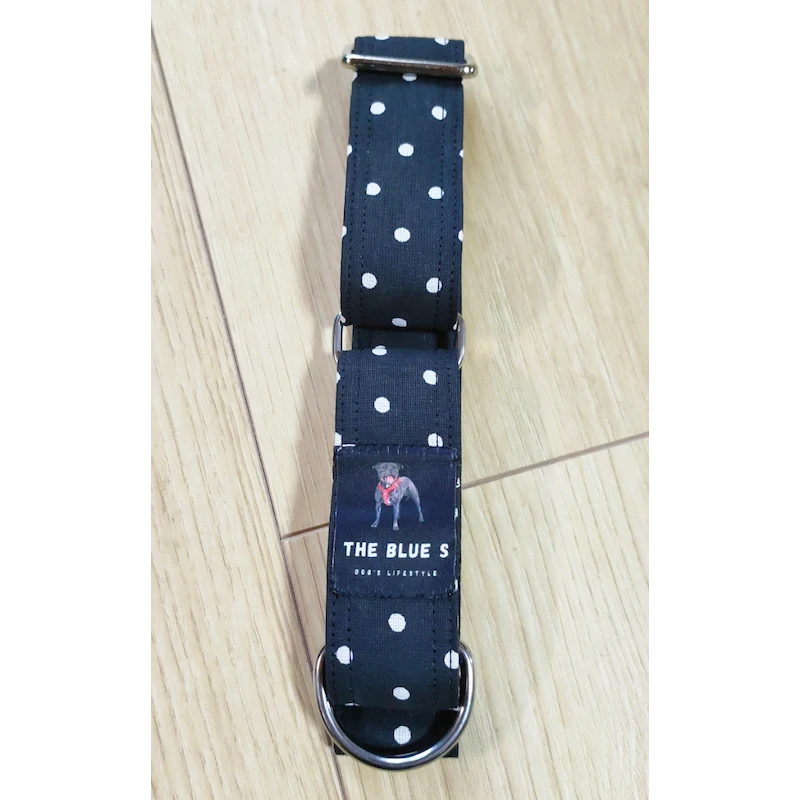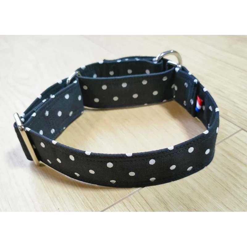 Il est fait en 100% Toile de coton, noir à pois blancs, sur une base sangle polypropylène.