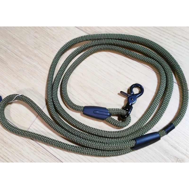 Laisse en corde kaki PPM (légère, flottantte, imperméable et inodore. De plus, elle a une très bonne résistance à la rupture, et est extrêmement facile à nouer).