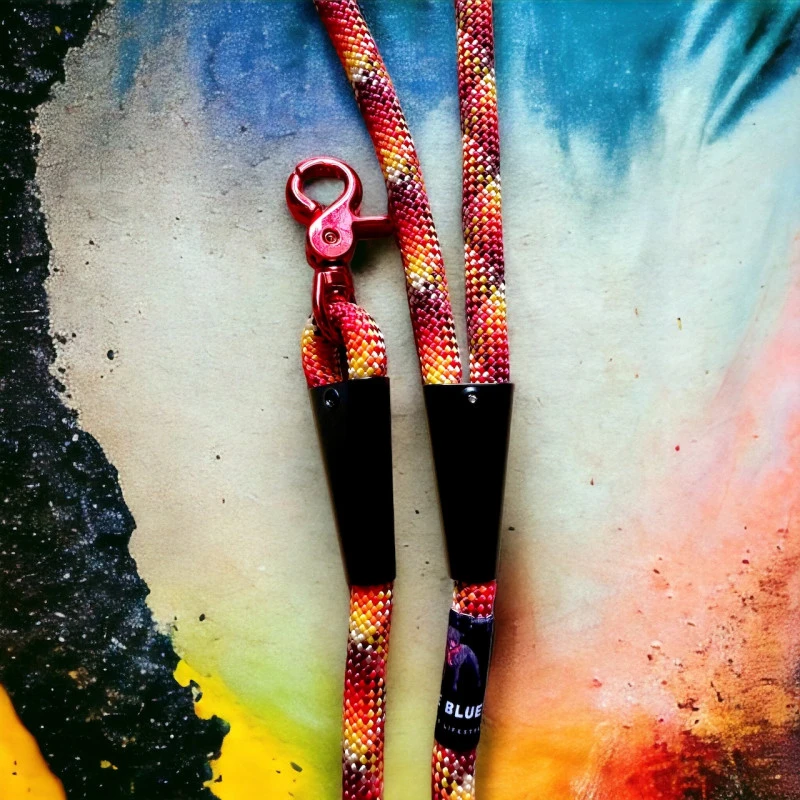 Laisse courte en corde Polypropylène (Jaune, orange, rouge). N’absorbe pas l’eau : cette caractéristique permet à la corde de flotter dans l’eau et de sécher rapidement.