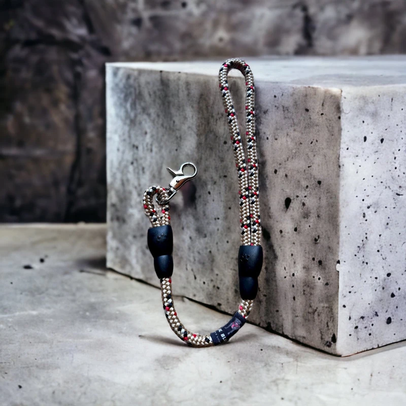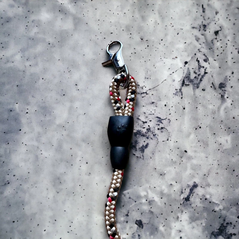Laisse courte en cordage tressé Polypropylène (impression tartan beige). N’absorbe pas l’eau : cette caractéristique permet à la corde de flotter dans l’eau et de sécher rapidement.