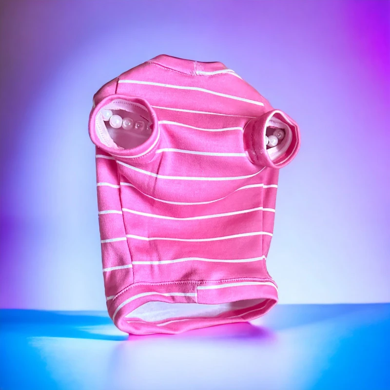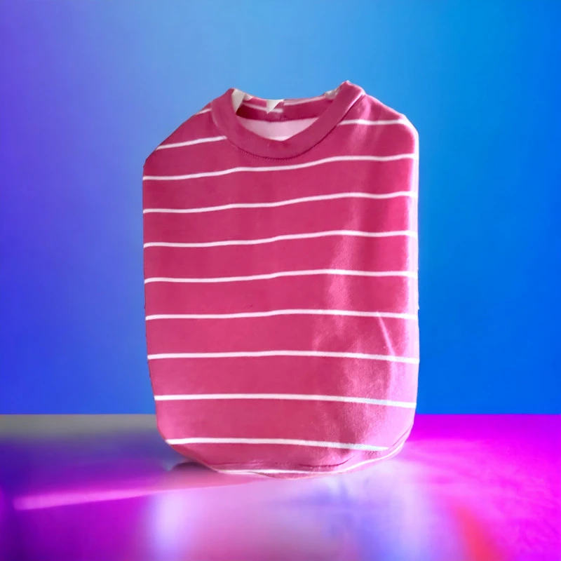 T-shirt rose à rayures blanches, pour un look frais et tendance.