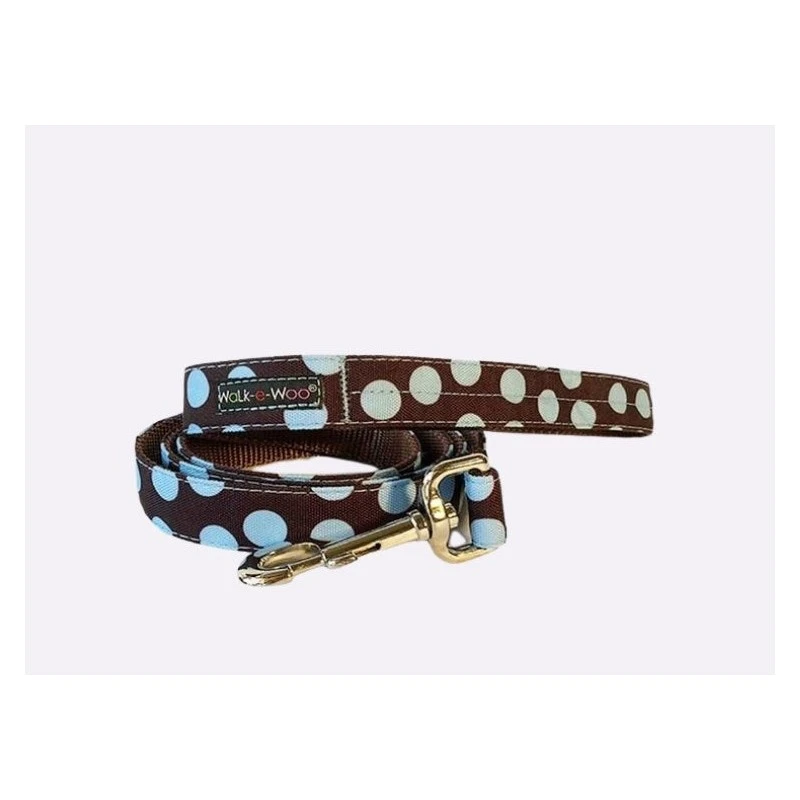Le collier et la laisse marron à pois bleus sont faits à partir de toile hydrofuge traitée antitache, résistant à l’eau et à la saleté. Ils sont facilement lavables en machine.