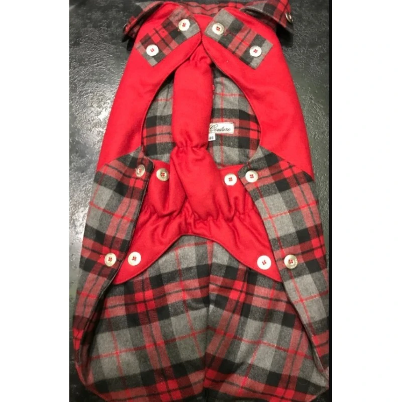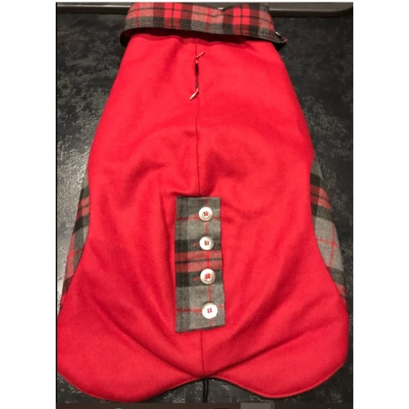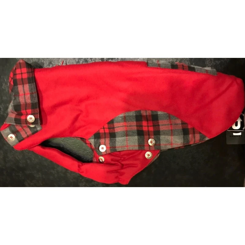 Le manteau pour chien Kapo est un modèle style « caban » d’une magnifique teinte rouge qui vous séduira avec sa doublure intérieure en imprimé écossais avec liseré brillant