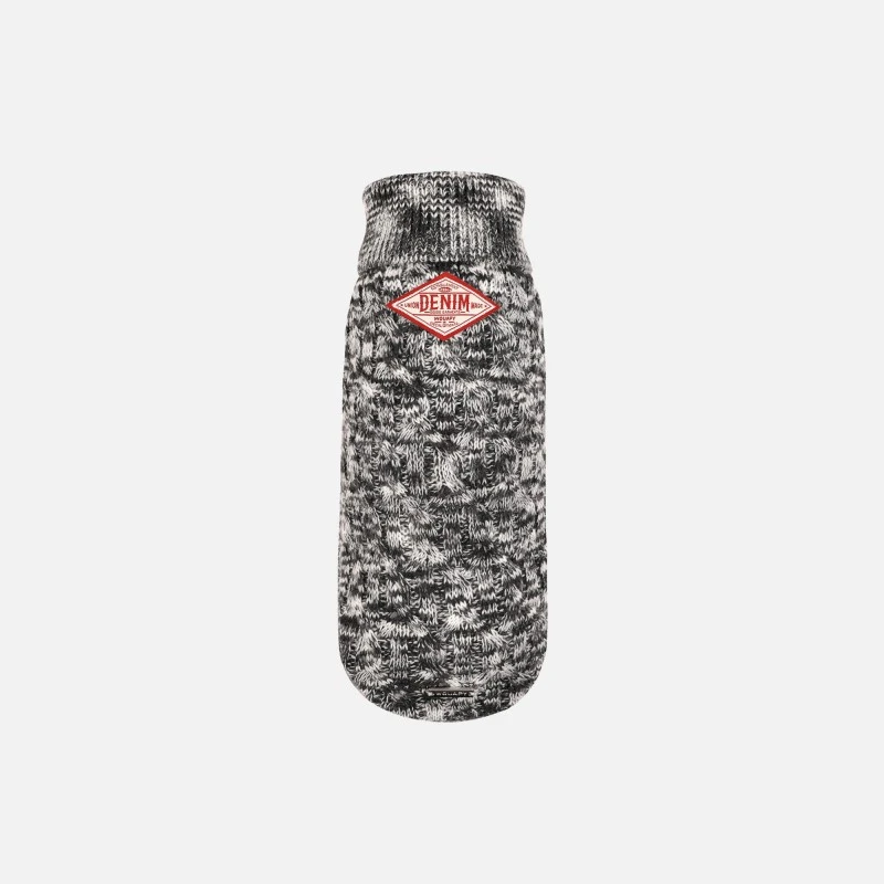 Pour passer l’hiver bien au chaud, ce pull pour chien à col roulé gris chiné et torsade est splendide à porter.